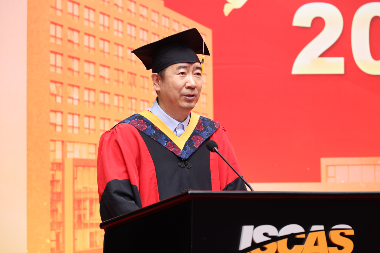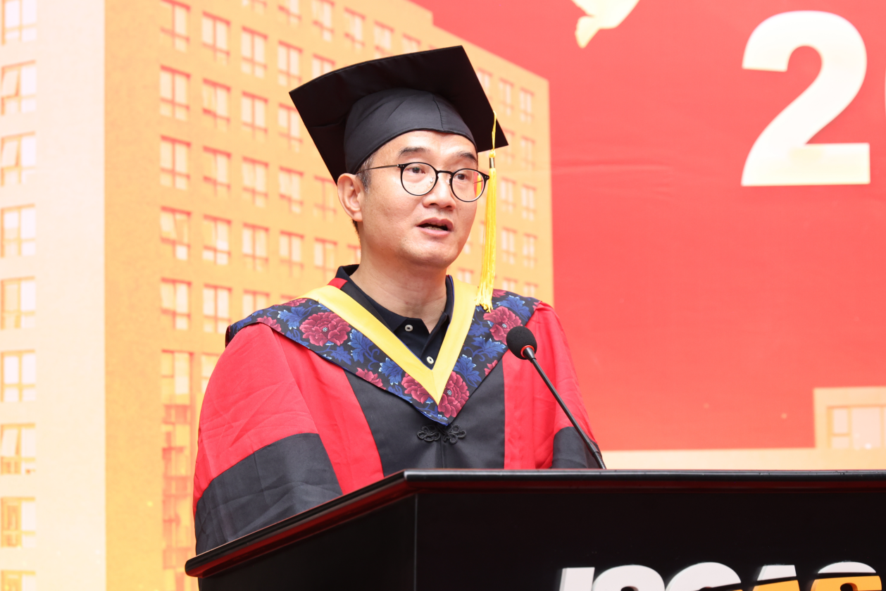 一场“青春骊歌”拉开了毕业典礼的帷幕。在雄壮的国歌声中,毕业典礼正式开始。赵琛第一时间致辞,他向2025届毕业生圆满完成学业、顺利毕业表示热烈的祝贺,向辛勤培育他们的导师和家长表达诚挚的感谢。